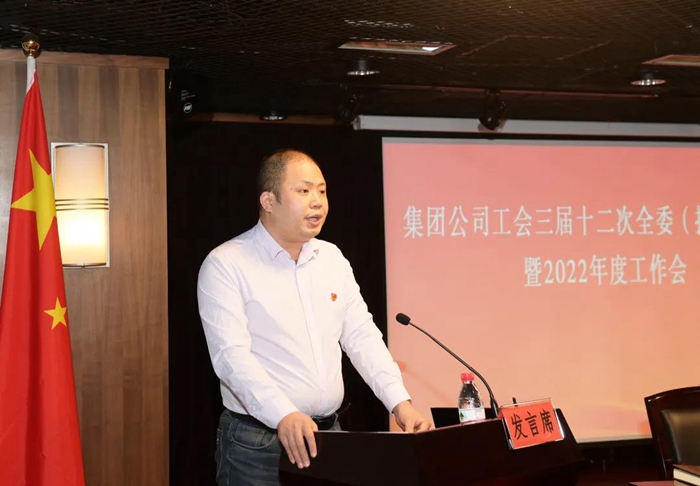 304永利工会常务副主席刘岩松以《贯彻落实第四次党代会精神,坚持政治引领,创新工作理念,精准服务职工,为建设国内知名的创新型企业集团共同奋斗》为题作工作报告;经审委副主任高宇飞作《2021年度集团工会经审工作报告》;集团工会常委张艳明宣读《关于表彰2021年度工会先进集体、工会先进干部和积极分子的决定》。