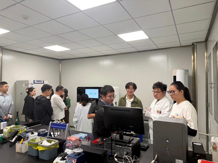 团员青年们来到毗邻清华大学、北京大学的北化生科公司国际生物岛现场参观学习。工作人员介绍了北化生科公司的整体规划与发展历程,重点介绍了集团生物医药产业布局、核心服务平台功能、重点产业集群优势以及未来发展目标愿景。随后,团员青年们走进实验室,专业人员为他们讲解了基因测序等基础知识,并结合正在开展的科研项目,生动介绍了这些技术在实际研发中的应用场景与巨大潜力。