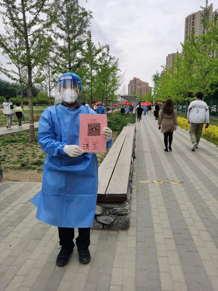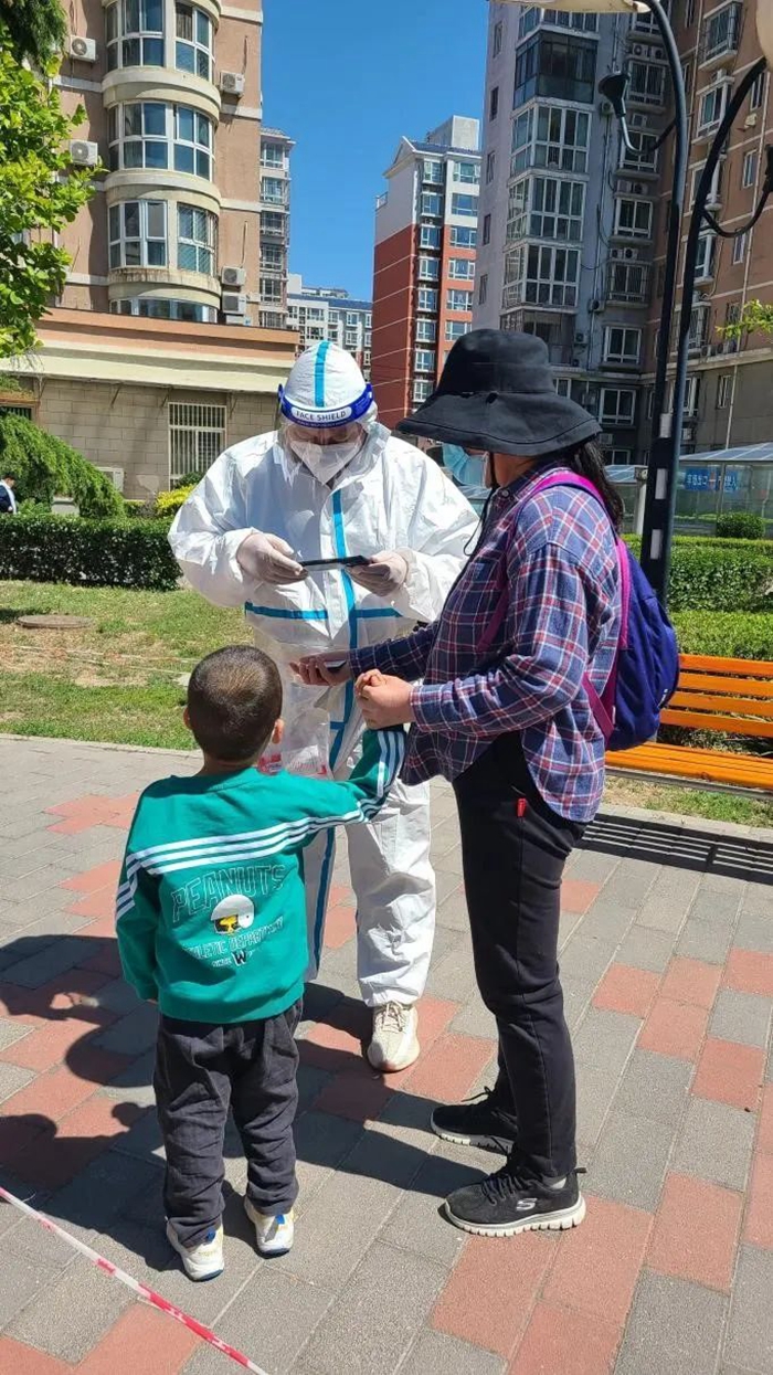 5月的天气,温度说升就升,每天2次4个小时的防护服穿下来,下岗时每每全身湿透,但我一点也不后悔,看着手机里每次录入600人、700人、800人等的信息时,内心升起一种无比的自豪,北京全员核酸检测里有我的一份汗水。