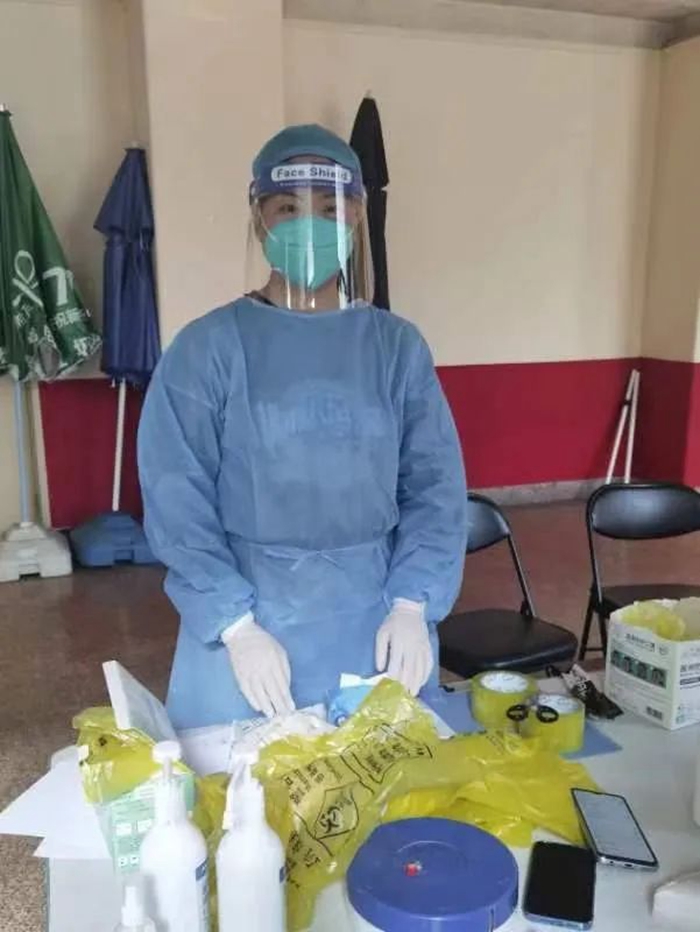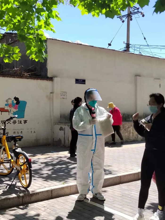 截至5月中旬,我已参加社区志愿服务8天,期间由于长时间身着防护服连续工作,身体出现了脱水状况,但仅休息一日后,继续奔赴社区防疫“战场”。