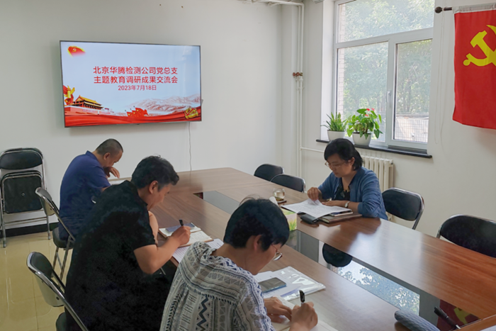 7月18日下午,华腾检测公司党总支召开主题教育调研成果交流会。党总支书记、董事长赵春波主持会议。