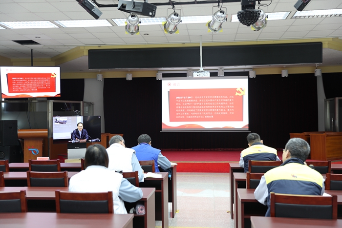 304永利党委书记、董事长王国华讲党史学习教育专题党课,党委常委、纪委书记张中原作开班动员并提出培训研讨要求。全集团120余名厂处级领导干部在1个主会场和12个视频分会场参加培训研讨。
