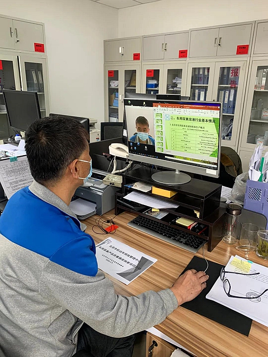 科室内部定期召开视频会议,总结并调整工作方案,并通过电话、微信、QQ等方式与客户沟通,了解企业客户的开复工情况和具体需求;通过电话、视频会议等形式保持与政府部门的业务联系,掌控各项业务的进展。涉及外出检测抽样,还会提前跟客户沟通好各种细节,以减少抽样操作时的接触和停留时间,在疫情防控的同时,确保工作的顺利进行。