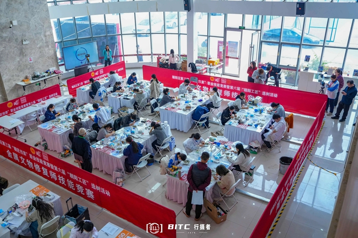 在此次大会现场实时直播的“文物修复师技能竞赛决赛”,依托技师学院先进的标准化实训场地与专业设备资源,汇聚故宫博物院、知名企业及相关院校的专家学者,共同为参赛选手打造了一个高水准、专业化的竞技平台。经过10月中旬初赛的激烈角逐, 脱颖而出的来自全北京市75名优秀文物修复师晋级决赛,在“金属修复”、“陶瓷修复”和“纸张书画修复”三大赛项中展现精湛技艺。
