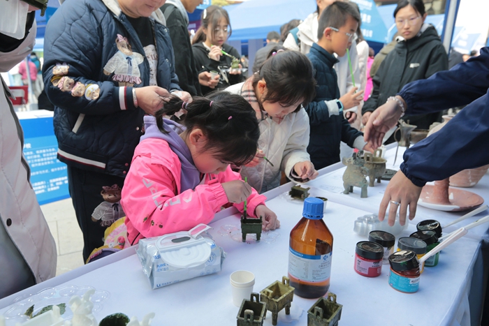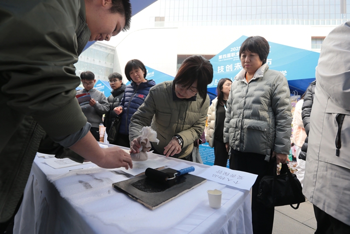 技师学院专门组织相关专业师生展演的文物修复体验项目受到广泛关注。高超的专业技能、热情的服务、精彩的现场讲解与操作体验,赢得众多市民驻足观看,成为一个亮眼的“打卡点”。与会嘉宾也被吸引,纷纷莅临技师学院展位,亲自体验现场展示项目,详细了解技师学院相关办学成果,并给予高度评价。